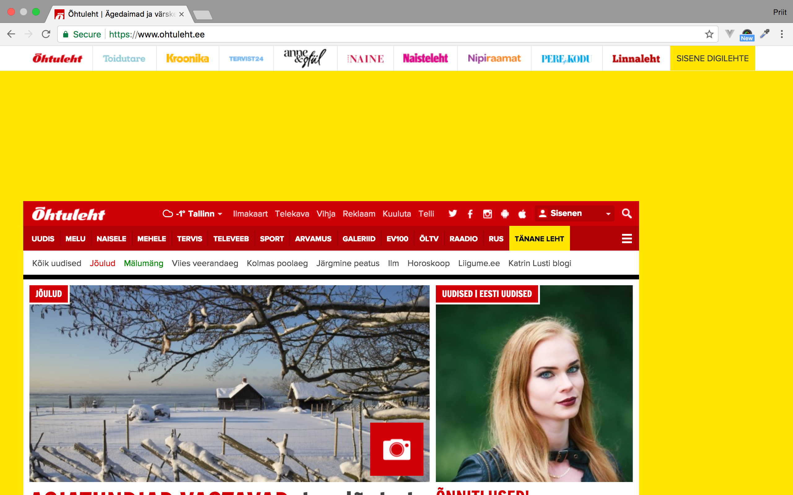 Посетителей портала Õhtuleht возможно приветствовать рекламой на весь экран. Такая реклама точно не останется незамеченной!